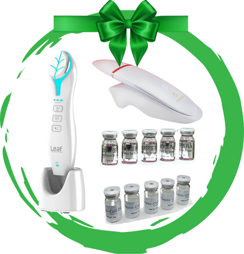 Indulge in the Leaf Fusion Plasma tool alongside our latest multi peptide serum. Experience the height of luxury with the Leaf Fusion Plasma tool and enhance your skincare routine with our powerful multi peptide serum. With this dynamic duo, you'll see real results and achieve the perfect balance of beauty and innovation.